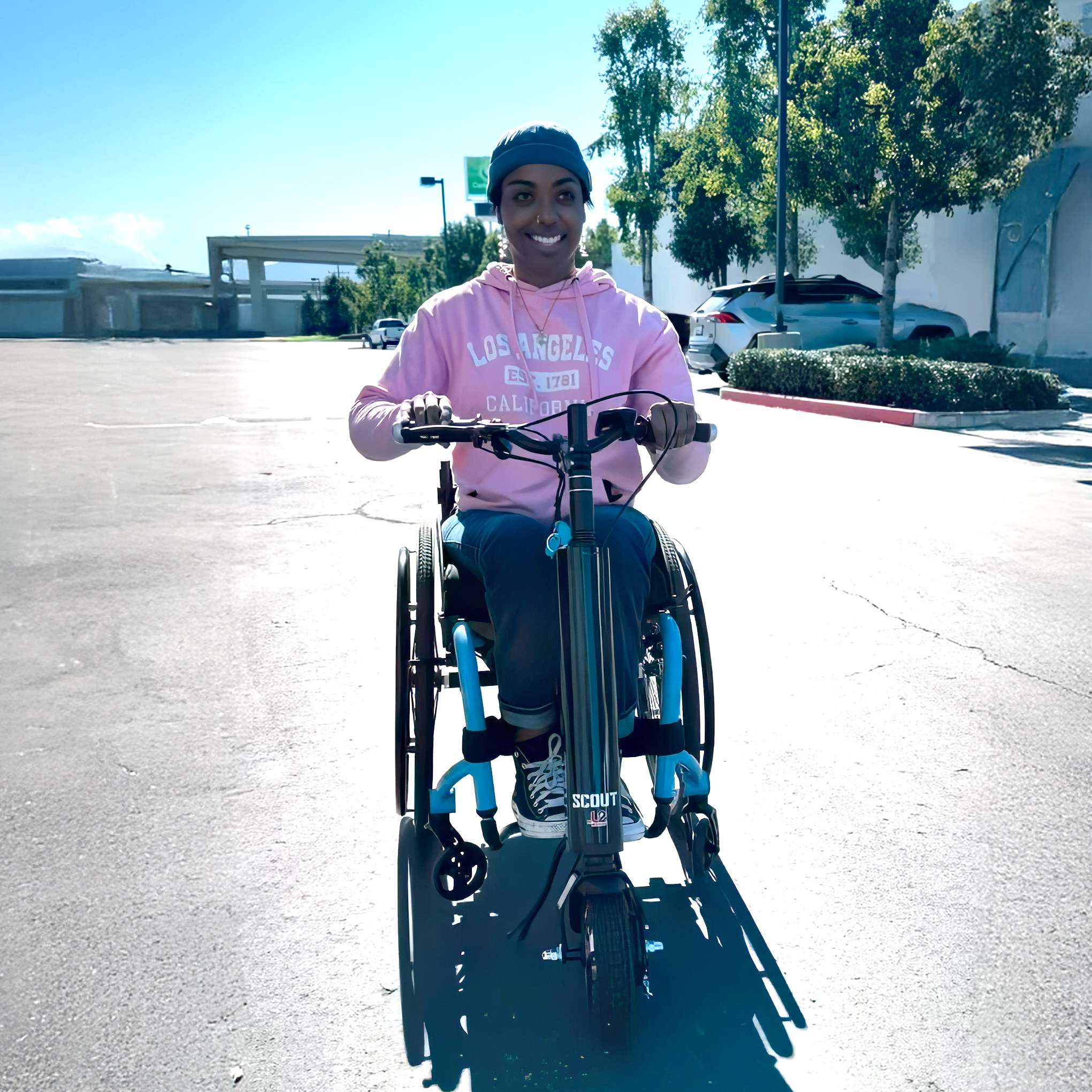 After recently moving into her own apartment in downtown Los Angeles, Denisha’s wheelchair became her primary mode of transportation due to limited street parking. She loves being out and exploring her city, attending music festivals, and staying socially connected. However, the physical demands of pushing her wheelchair long distances and up steep ramps often led to fatigue and made her hesitant to ask for help.